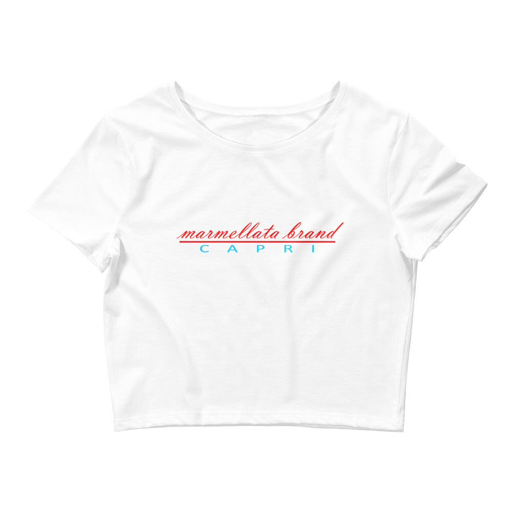 Grafica: scritta Marmellata Brand con località Capri e barattolo Marmellata dietro la nuca. Immancabile per chi ama la Dolce Vita!